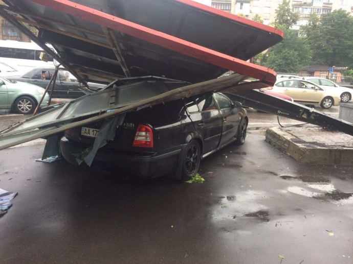 Кроме того, по их информации, на проспекте Победы, 53 билборд упал на автомобиль, а на улице Довнар-Запольского на дорогу упали два дерева.