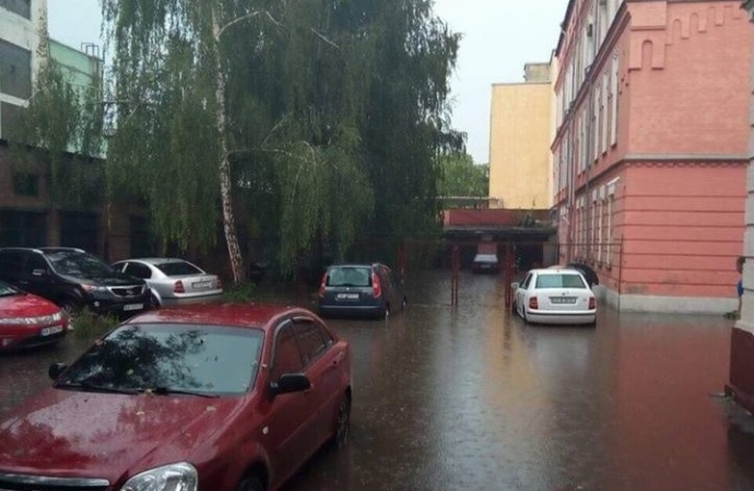 Из-за мощного ливня в Киеве затопило здание Соломенского районного суда.