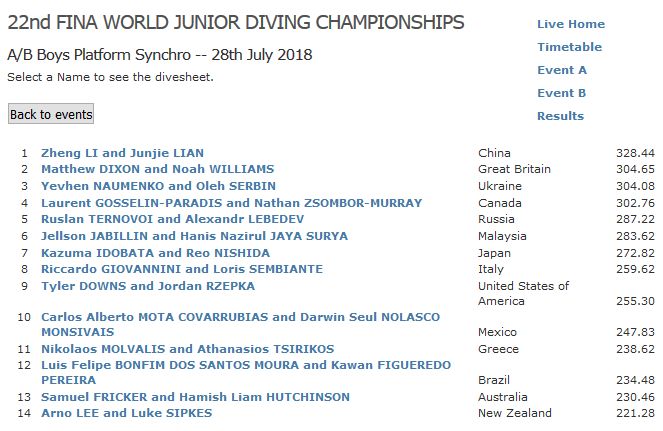 В Киеве завершились финальные соревнования юниорского чемпионата мира по прыжкам в воду в синхронных прыжках с 10-метровой платформы.