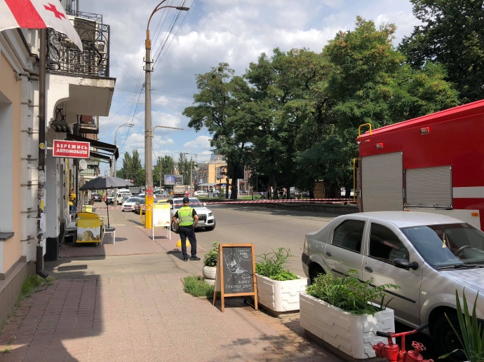 В Киеве на Подоле, на пересечении Валов и Константиновской, перекрыли движение транспорта и пешеходов, потому что нашли гранату.