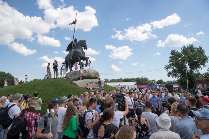 Виталий Кличко подчеркнул: "Илья Муромец родился под Черниговом, служил в дружине князя Владимира, защищал город Киев, похоронен в Киево-Печерской Лавре. Это наш богатырь, это наша история, которую у нас пытаются украсть. Поэтому Муромец будет стоять здесь, на историческом месте, где когда-то располагалась богатырская застава".