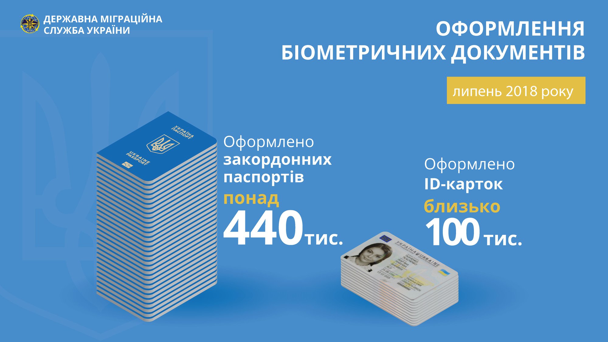 В ГМС отметили, что только в июле украинцы оформили 440 тысяч загранпаспортов и 100 тысяч ID-карточек.