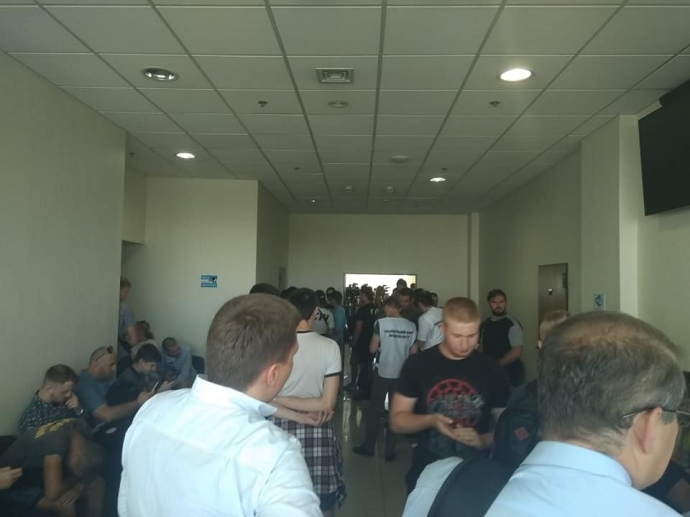 Около сотни националистов С14 пришли в суд, который рассматривает апелляционную жалобу на меру пресечения координатора организации Сергея Мазура.
