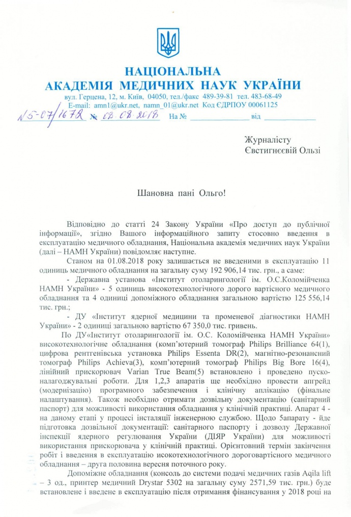В Институте ядерной медицины за нехватки средств простаивает магнитно-резонансный томограф Ingenia 3.0 стоимостью 31,5 млн грн и комплекс трьохмодальнои системы ОФЭКТ/КТ/ПЭТ Any Scan SCP стоимостью 33,85 млн грн.