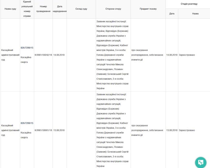 Кассационные жалобы подали Министерство внутренних дел и ГСЧС, об этом свидетельствует распорядок дел на сайте суда.