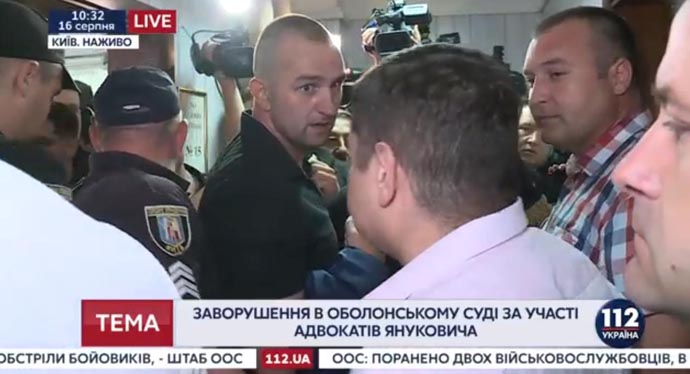 В Оболонском районном суде, который рассматривает дело о государственной измене бывшего президента Виктора Януковича, произошла потасовка.