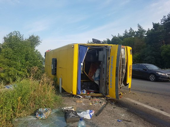Отмечается, что фура въехала в маршрутку, в результате чего последняя перевернулась.