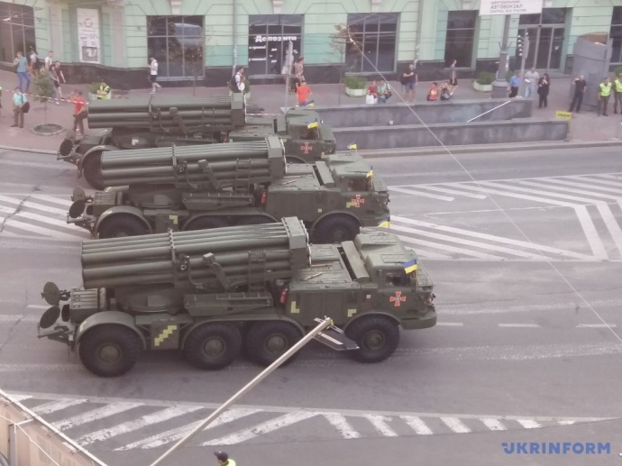 В связи с этим в центре Киева было перекрыто движение транспорта. По Крещатику прошли колонны военнослужащих ВСУ, Государственной службы чрезвычайных ситуаций, СБУ и других подразделений.