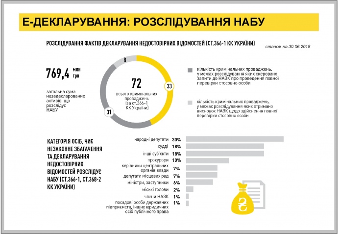 С 72 уголовных производств о недостоверных сведениях в декларациях каждое второе касается недекларирования активов судьями или народными депутатами.
