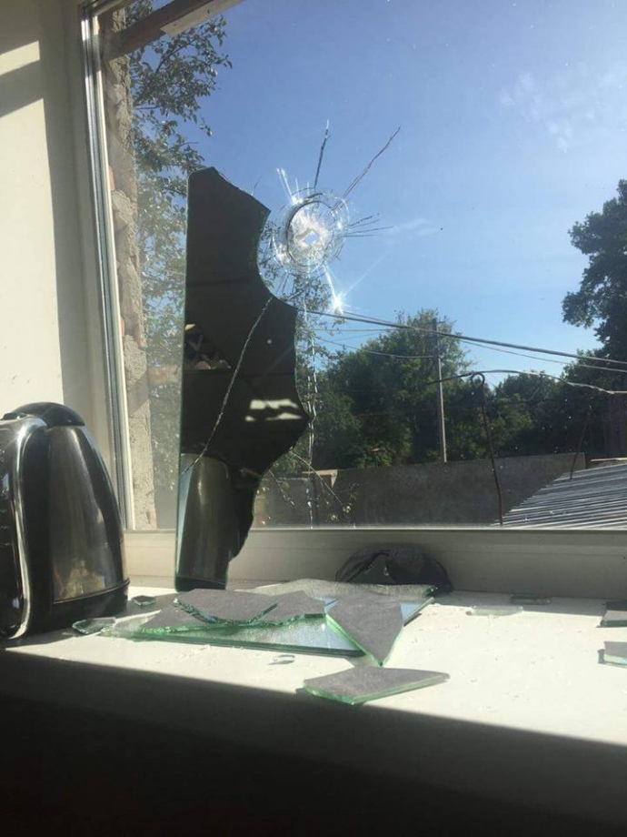 "Сегодня, в 15.48, со стороны временно оккупированной территории из 7,62-миллиметровых снайперских винтовок велся обстрел по КПВВ "Майорское". В результате обстрела поврежден один из модулей, в котором в то время пограничники Краматорского отряда из состава Объединенных сил осуществляли пропускные операции граждан, следовавших через линию разграничения", - рассказывают военные.