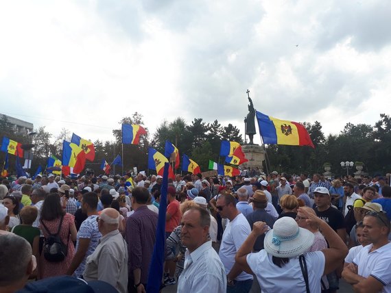Протест оппозиции переместился к памятнику Штефану. Люди кричали "Воры", "Долой мафию" и "Мы не сдадимся".