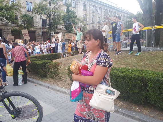 По данным NewsMaker, некоторые протестующие партии "Шор" начали покидать площадь. Люди выходили не с пустыми руками - у каждого пакет с продуктами.