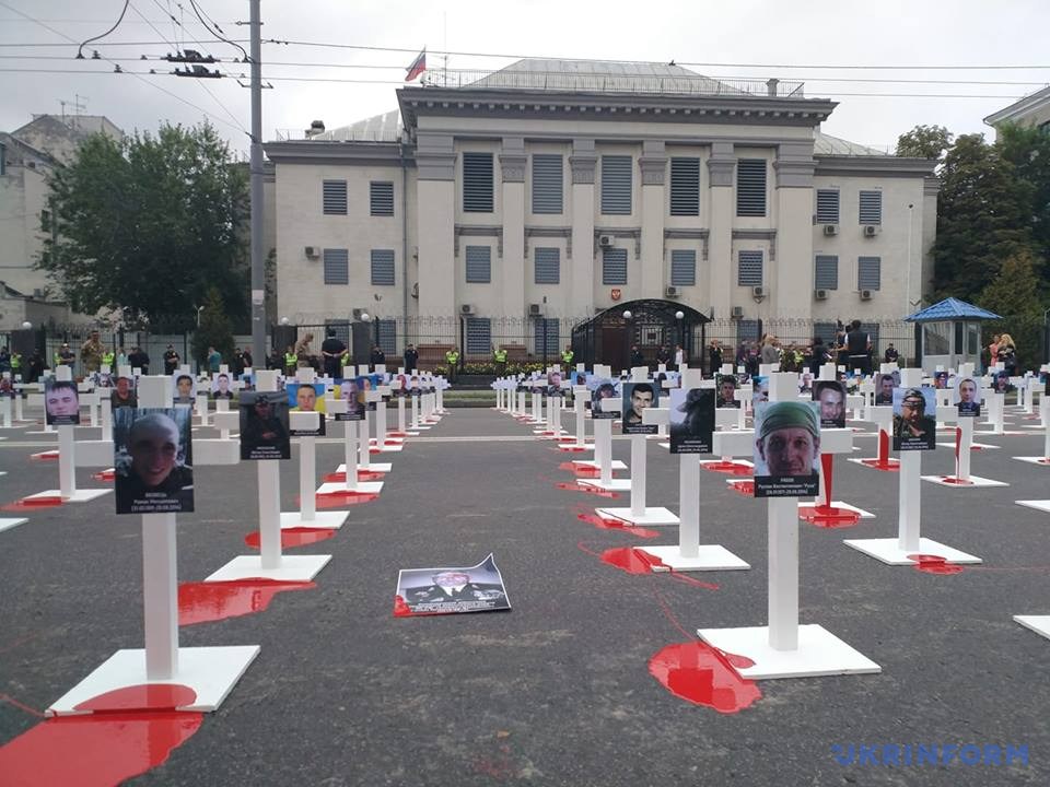 "Путин, за Иловайск ответишь": под посольством РФ поставили кресты