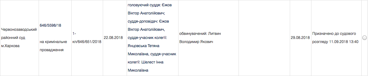 Обвинение Литвина Владимира Яковлевича будет рассматривать коллегия из трех судей.