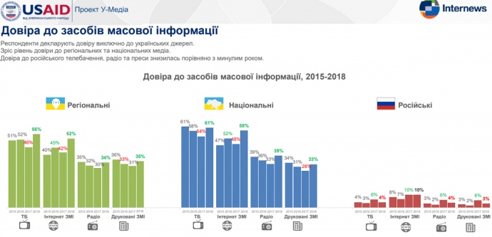 Уровень доверия к национальным и региональным СМИ вырос во всех регионах Украины, доверие к российским СМИ остается низким.