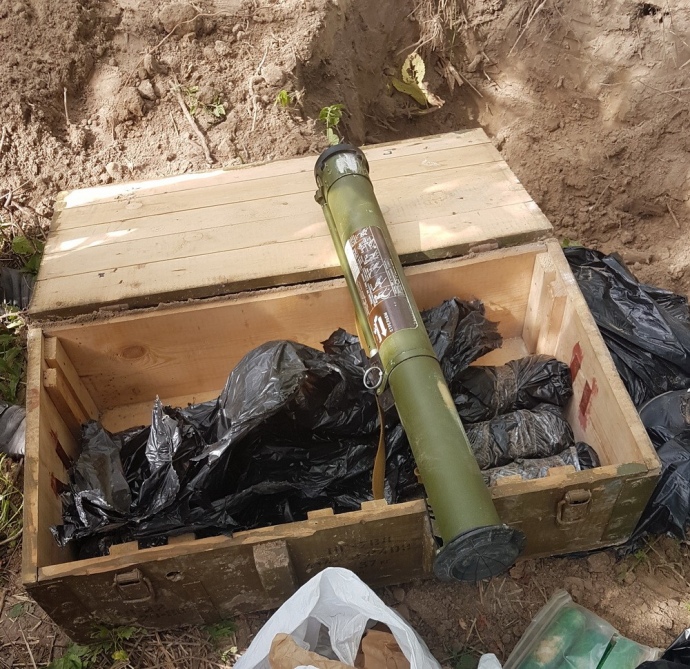 "Из схрона правоохранители изъяли четыре гранатомета РПГ-26, два килограмма пластида, три пороховых заряда к выстрелам ПГ-7 и почти двести патронов к автомату Калашникова калибра 5,45 мм", - отметили в ведомстве.