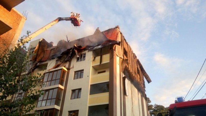 "Пожарно-спасательными подразделениями, которые прибыли на место, было установлено, что пожар возник на крыше 5-этажного недостроенного дома. В 19:22 пожар удалось локализовать, в 19:39 - ликвидировать", - сообщили в ГосЧС.