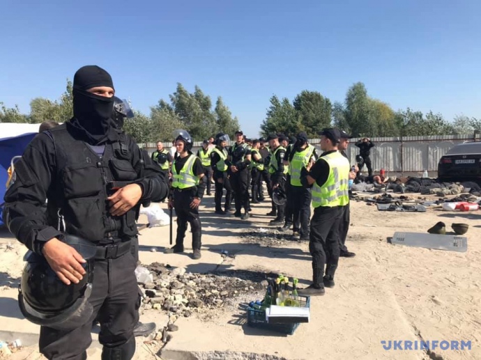 Участие в акции протеста, кроме жителей района и активистов, выступающих против застройки и в поддержку создания "Экопарк "Осокорки", принимали также представители организации "Нацдружины" и партии "Нацкорпус".
