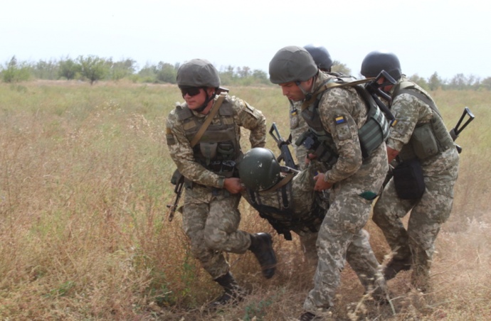 "Особое внимание на учениях было уделено вопросам тактической медицины, а именно предоставлению домедицинской помощи на поле боя и эвакуации раненых из-под огня противника", - рассказал помощник начальника Донецко-Луганского регионального управления ГПСУ Олег Личковский.