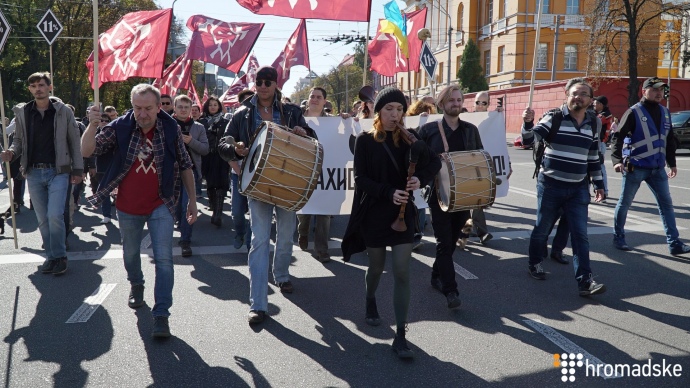 Как сообщает Громадське, участники акции шли от парка Шевченко мимо главного управления СБУ до Майдану Незалежності.