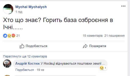 Ранее Черниговский филиал Общественного сообщил, что около Ични в районе сел Дружба и Августовка в 3.30 взорвались склады с боеприпасами. Сейчас там эвакуируют людей. Информацию UA:Чернигов подтвердили на горячей линии 101 в области. Также это подтверждают источники в полиции.