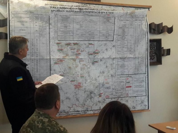 По состоянию на 9:30 проходит заседание штаба по ликвидации последствий пожара на арсенале оружия под председательством премьер-министра Владимира Гройсмана, первого заместителя министра внутренних дел Сергея Ярового и главы ГСЧС Николая Чечеткина, сообщает ГСЧС.