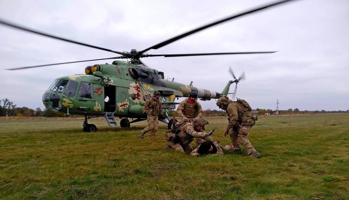 "Вчера, кстати, коррективы в тренировки военных медиков внесла сама жизнь. Экипаж реанимационно-операционного самолета Ан-26 "Вита" с американскими и украинскими медиками на борту совершил аэромедицинскую эвакуацию раненого из Харькова в Киев", - рассказал Сморжанюк.