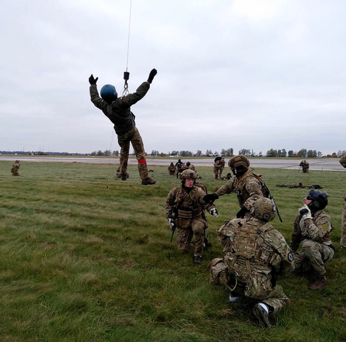 В Винницкой области в рамках многонациональных учений "Чистое небо - 2018" специалисты поисково-спасательного обеспечения Вооруженных Сил Украины совместно с военнослужащими из США и Дании практически отрабатывают вопросы поиска, оказания помощи и эвакуации экипажей, терпящих бедствие.