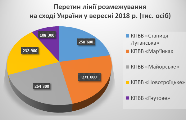 В течение сентября 2018 года линию разграничения на востоке Украины в обоих направлениях пересекло 1 127 700 человек - на 14,5% меньше по сравнению с августом.