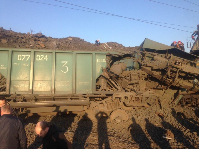 На территории Анновского карьера "Северного горно-обогатительного комбината" в Кривом Роза столкнулись два локомотива.