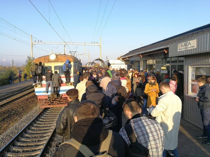 Киевляне блокировали городскую электричку: опаздывает и имеет мало вагонов