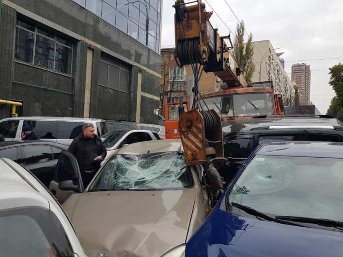 Автокран в центре Киева смял 18 автомобилей