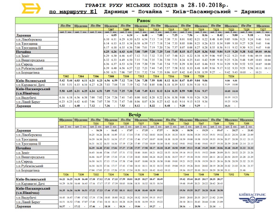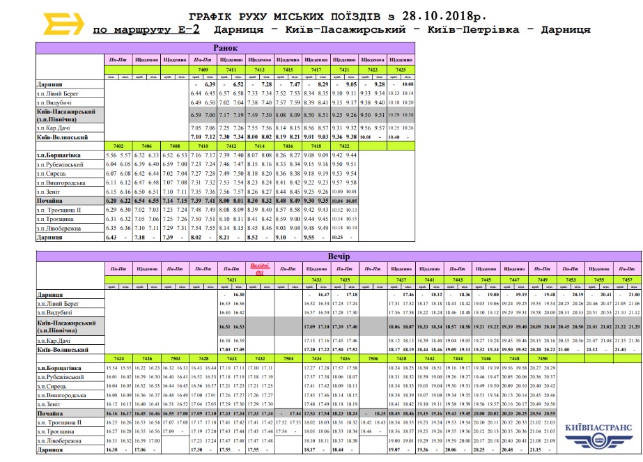 КП "Киевпастранс" сообщило об изменении расписания электропоездов "Городской электрички".