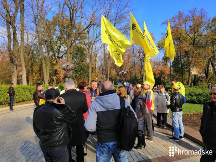 Как сообщает Громадське, большинство присутствующих пришли с флагами политических партий: "Народного руха Украины", "Гражданской позиции", "Аграрной партии" и ВО "Свобода".