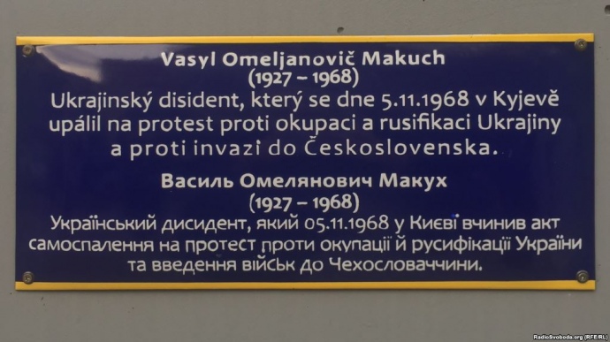 В Праге на улице Украинской состоялось открытие моста и таблички в честь украинского диссидента Василия Макуха, который совершил акт самосожжения в знак протеста против оккупации Чехословакии советскими войсками.