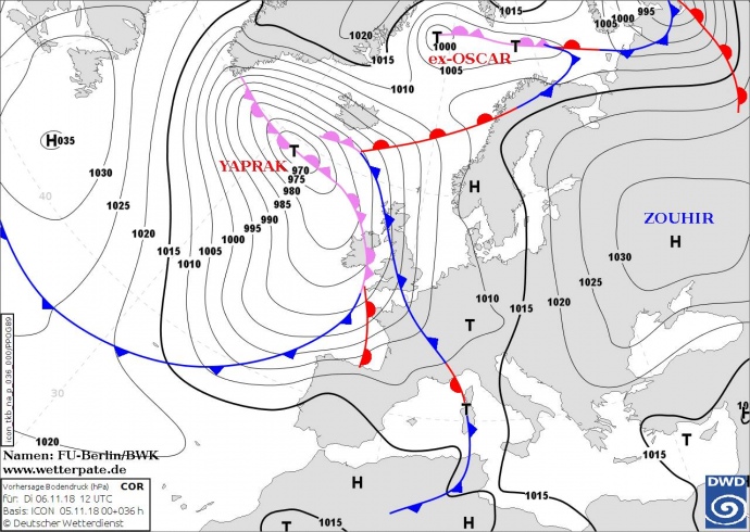 В Украину пришел антициклон Zouhir, который не пустит на территорию страны атмосферные фронты циклона Yaprak.