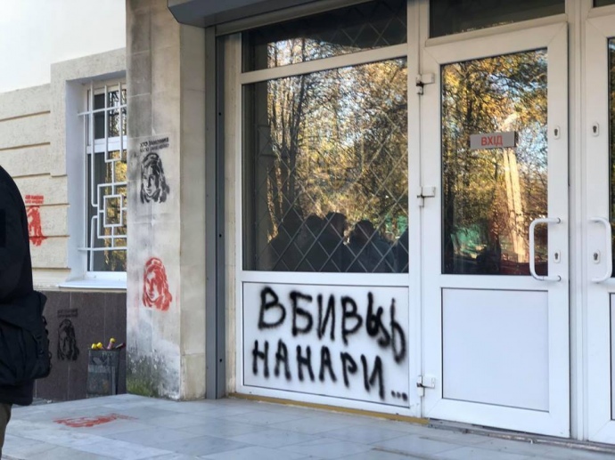 Дело Гандзюк: полицию в Херсоне задымили и зарисовали трафаретами