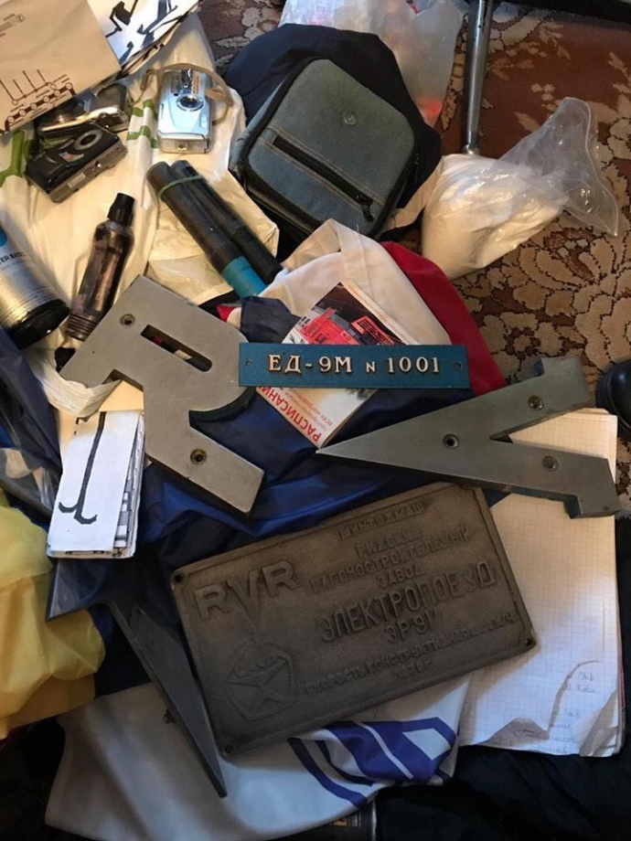 По результатам проведения 7 обысков по месту жительства вандалов обнаружено и изъято балаклавы, баллоны с краской, запчасти от электрички, вещества, похожие на наркотические средства, перчатки, видеокамеры и другие вещественные доказательства.