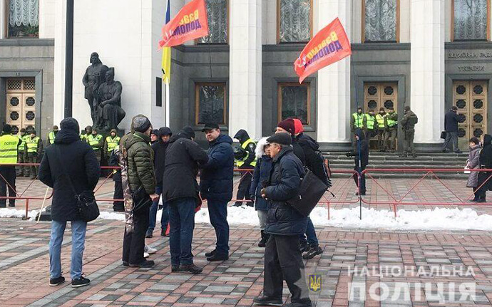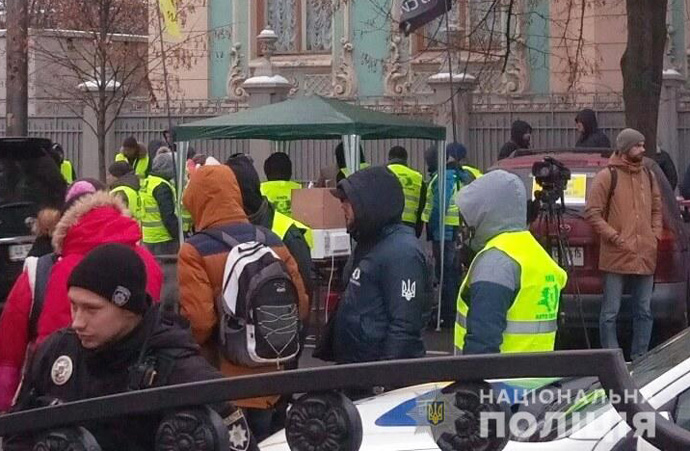 Полиция Киева сообщила, что более 800 правоохранителей обеспечивают правопорядок во время акций в правительственном квартале.