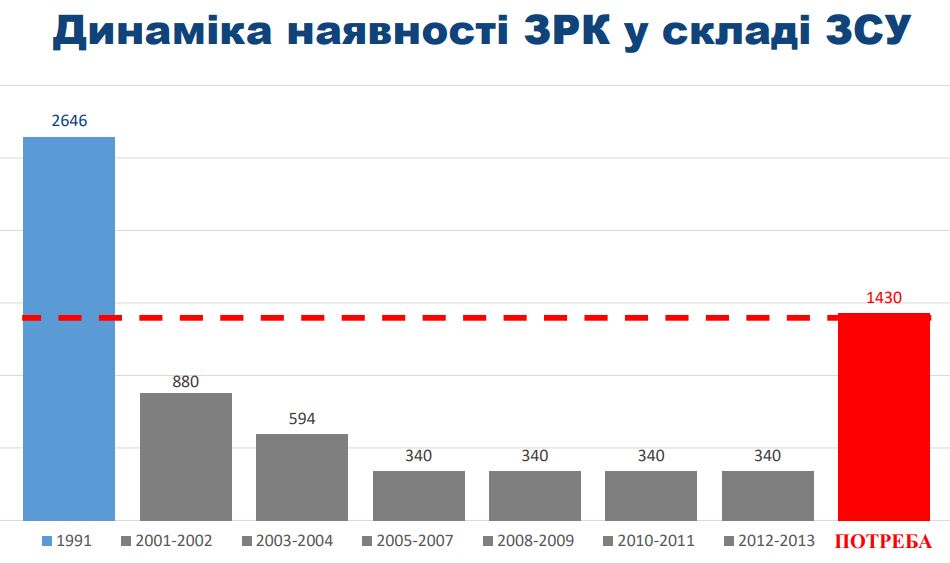А нехватку зенитно-ракетных комплексов зафиксировали в 2001 году (но не исключено, что меньше нужного количества ЗРК стало раньше, тогда как в 1991 году их было вдвое больше потребности).