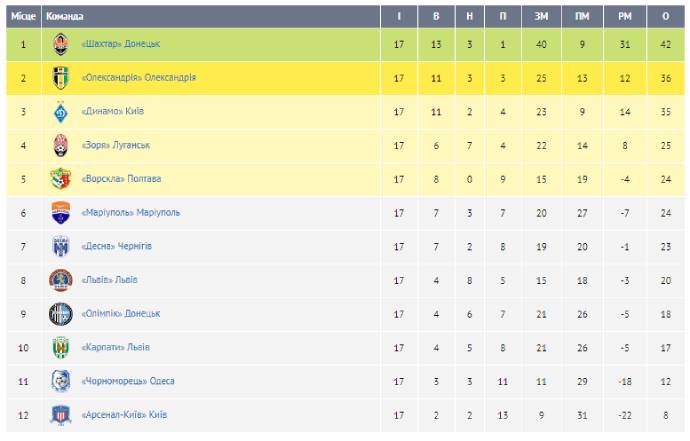 Другие матчи 17-го тура завершились с такими результатами: "Десна" - "Заря" 0:2, "Арсенал-Киев" - "Карпаты" 1:1, "Львов" - "Мариуполь" 2:2, "Шахтер" - "Олимпик" 2:2, "Ворскла" - "Александрия" 0:1.