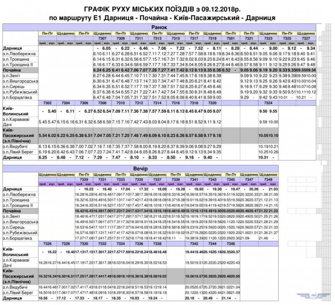 С 9 декабря в Киеве меняется расписание движения электропоездов "Городской электрички".