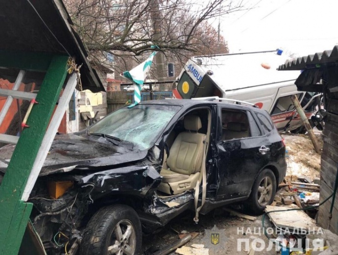 "Предварительно, автомобиль "скорой", который двигался с проблесковыми маячками по улице Мазепы, совершил столкновение с автомобилем "Hyundai Santa Fe" под управлением 40-летнего жителя пгт.Романов. После этого оба автомобиля въехали в дом", - сообщили в полиции.