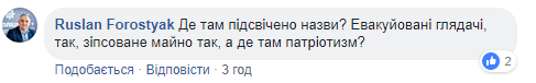 В комментариях к первому посту Синицына советник начальника ГУ Нацполиции в Одесской области Руслан Форостяк написал, что "матч сорвали, их принимали не за то что они патриоты, а именно за хулиганство".