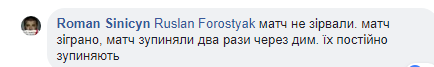Но Синицын настаивает, что матч не срывали, "его останавливали 2 раза из-за дыма".
