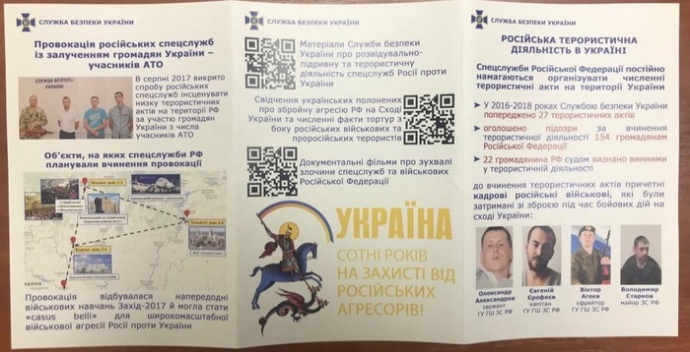 "Буклеты, которые изданы на украинском и английском языках, содержат специальные QR-коды, которые дают возможность прямого доступа к компилируемой информации о соответствующих фактах российской преступной деятельности как разоблаченной СБУ, так и собранных общественными активистами", - рассказали в ведомстве.
