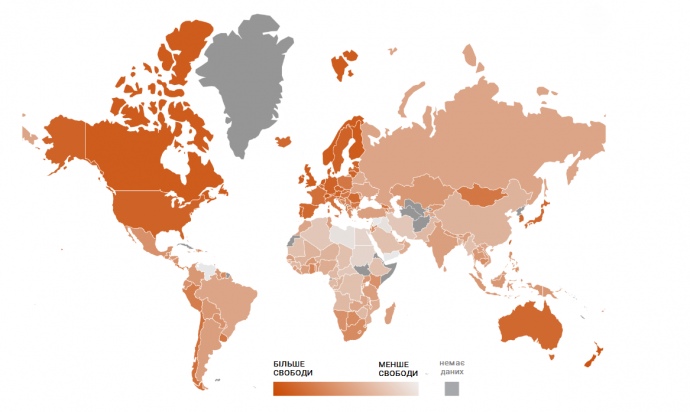 Украина поднялась на 16 пунктов и заняла 118 место из 162 в рейтинге "Индекс свободы человека 2018".