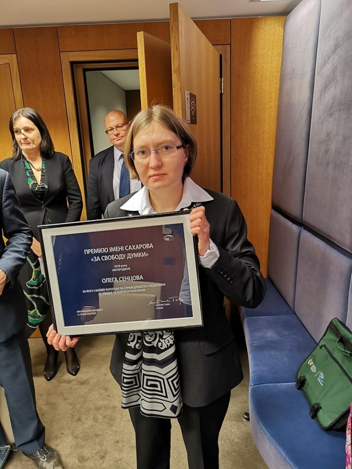 В октябре 2018 года Сенцов стал лауреатом премии Сахарова. Номинировали его на премию Европейская народная партия (ЕНП), крупнейшая фракция в Европейском парламенте.