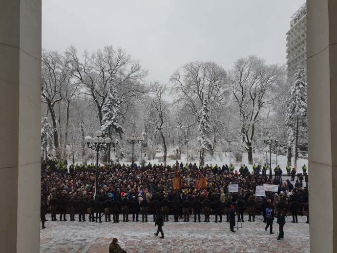 Более тысячи сторонников УПЦ МП митингуют под Радой