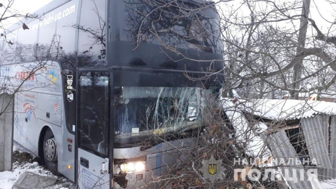 "По предварительной информации, 28-летний водитель "Ford Transit" не справился с управлением, в результате чего авто развернуло несколько раз и вынесло на встречную полосу, где произошло столкновение с автобусом "Van Hool", который двигался в направлении Винницы. В результате удара автобус отбросило в забор одного из дворов населенного пункта", - сообщили в полиции.